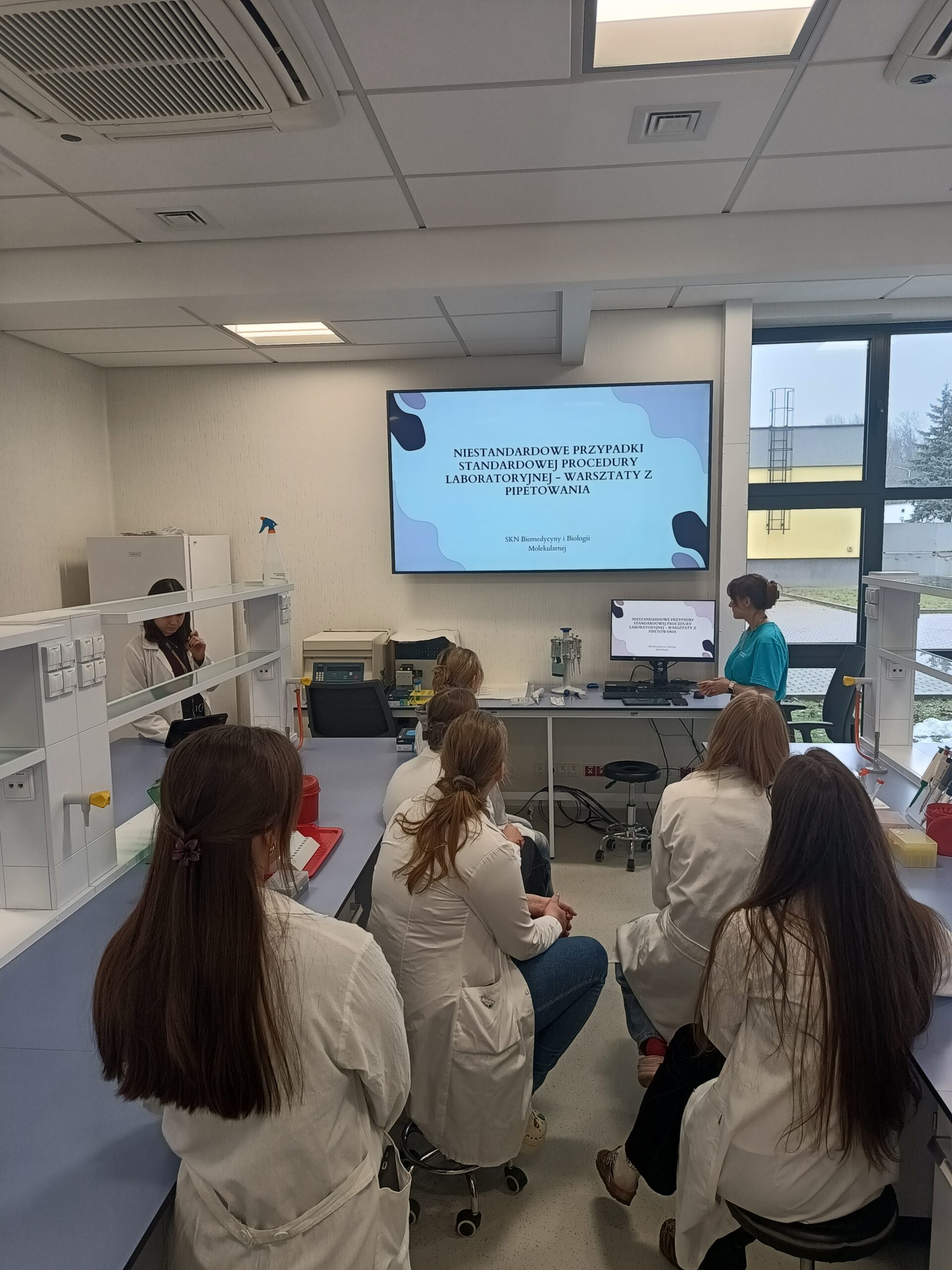 • W dniu 5.12.2025, w ramach konferencji „I’m Gonna Be a Scientist” odbyły się warsztaty naukowe pt. „Niestandardowe przypadki standardowej procedury laboratoryjnej – Warsztaty z pipetowania”, zorganizowane i przeprowadzone przez Studenckie Koło Naukowe Biomedycyny i Biologii Molekularnej.